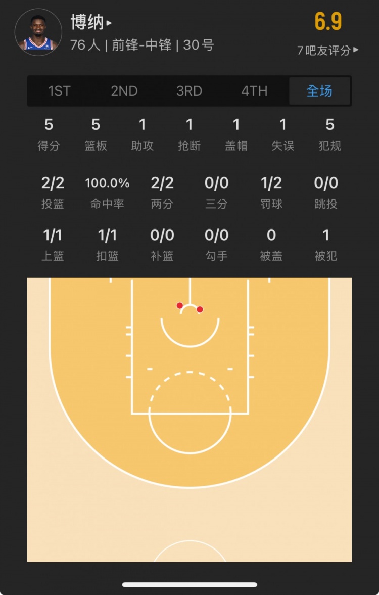76人41号秀 阿德姆-博纳 登场17.3分钟
