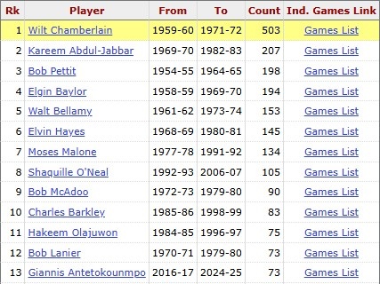 字母哥74次30分15板历史第12 队史刚好达到贾巴尔的一半