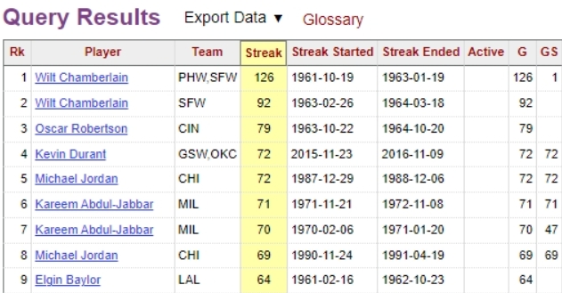 距离NBA名宿迈克尔-乔丹与凯文-杜兰特连续72场20+还差8场。