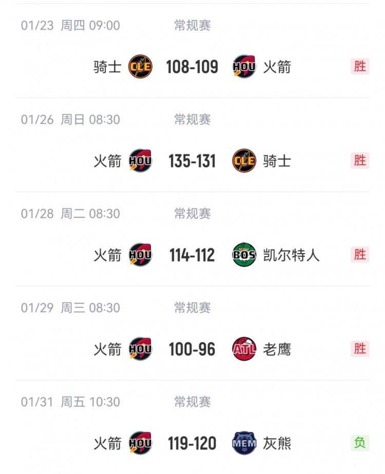 僵持球打得可还行?!火箭近5战分差都不超4分 仅今天输了