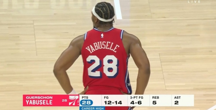 此前最高22分!亚布塞莱补篮再中 砍生涯新高28分了 亚布塞莱此前生涯最高是22分 2025/02/01