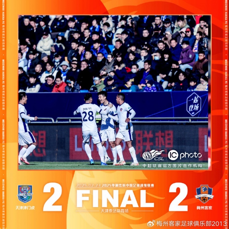 北京时间2月23日15:30,2025华润饮料中国足球超级联赛第1轮比赛,梅州客家做客天津泰达体育场对阵天津津门虎。