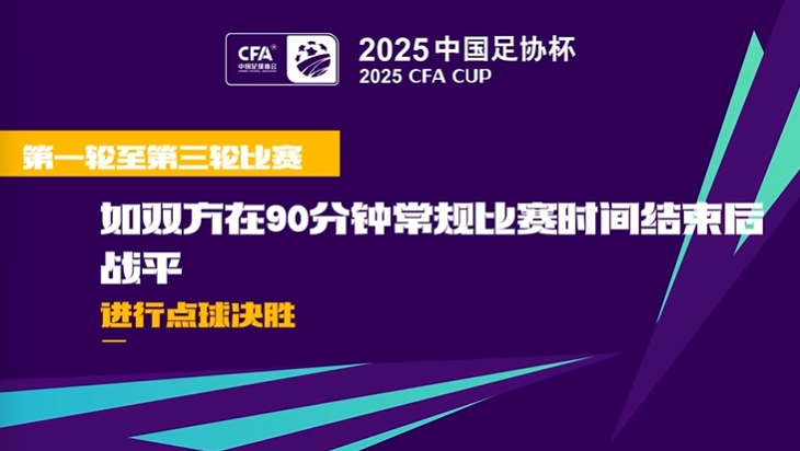 2025中国足协杯正赛将于3月14日开赛,12月5日结束,一共进行7轮,为主客场单败淘汰赛制,共64支参赛队,进行63场比赛,第1轮至第3轮若在90分钟内战平将直接进行点球大战,决赛将于12月5日在苏州奥体中心进行。