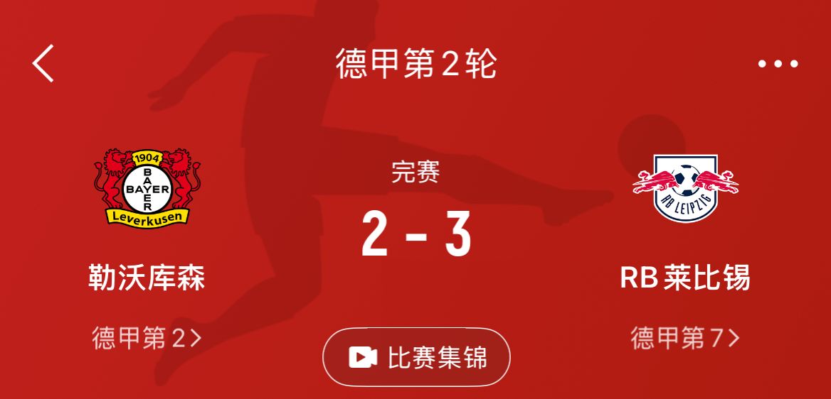 大型翻车现场!勒沃库森德甲23轮不败被终结,上次输是半年前