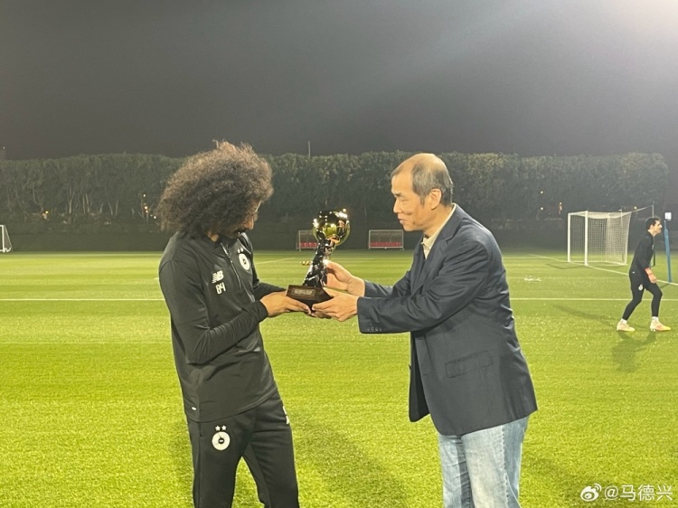 马德兴在社媒写道:“由体坛传媒集团和体坛周报联合组织的2024年亚洲金球奖评选活动已经揭晓,在由亚洲40多个国家和地区的足球记者参与的投票中,来自卡塔尔的阿菲夫获得最高分,荣获2024年亚洲金球奖。新春期间,我作为体坛传媒的代表专程赶赴多哈,当地时间6日下午在萨德俱乐部的训练场地,于训练开始之前专门进行了一个简短的颁奖仪式,将金球授予阿菲夫。阿菲夫在获奖之后,萨德队的队友一起祝贺阿菲夫。”
